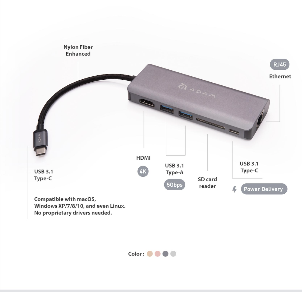有線LANやリーダーライター、USBハブ、PDパススルー充電(60w)とHDMIマルチディスプレイアダプターがこれひとつに。