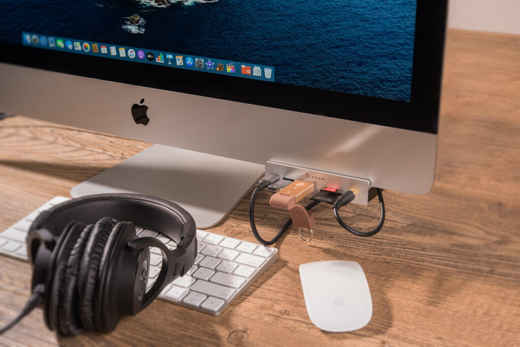 iMac/iMac Proをお使いの方に最適。CASA (カーサ) Hub i8はiMacのフロント部分にしっかりと固定できるUSBハブ×ステレオオーディオ×リーダーライター×HDMIマルチディスプレイアダプターです。