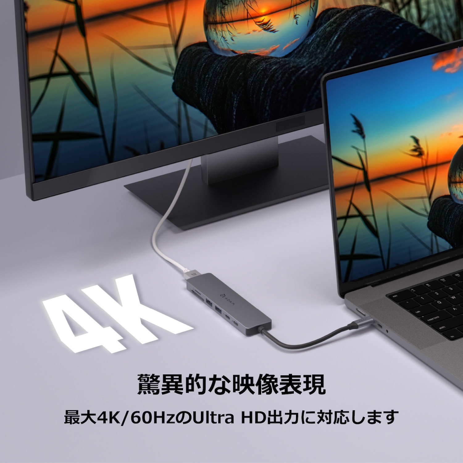 1つのUSB-Cポートから変換アダプターやドライバーソフトを使用せずに7つの機能を拡張します。