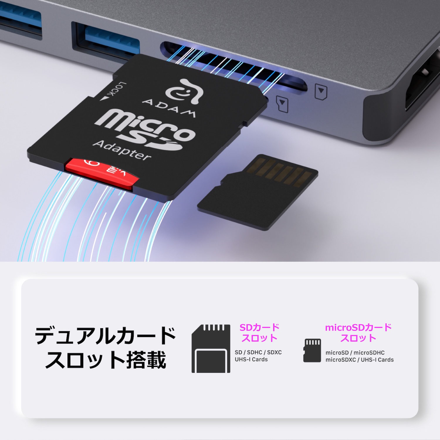 | メモリーカードスロット: | SDカード: SD3.0、SD/SDHC/SDXC、UHS-Iカード対応 microSDカード: SD3.0、microSD/microSDHC/microSDXC、UHS-Iカード対応 |