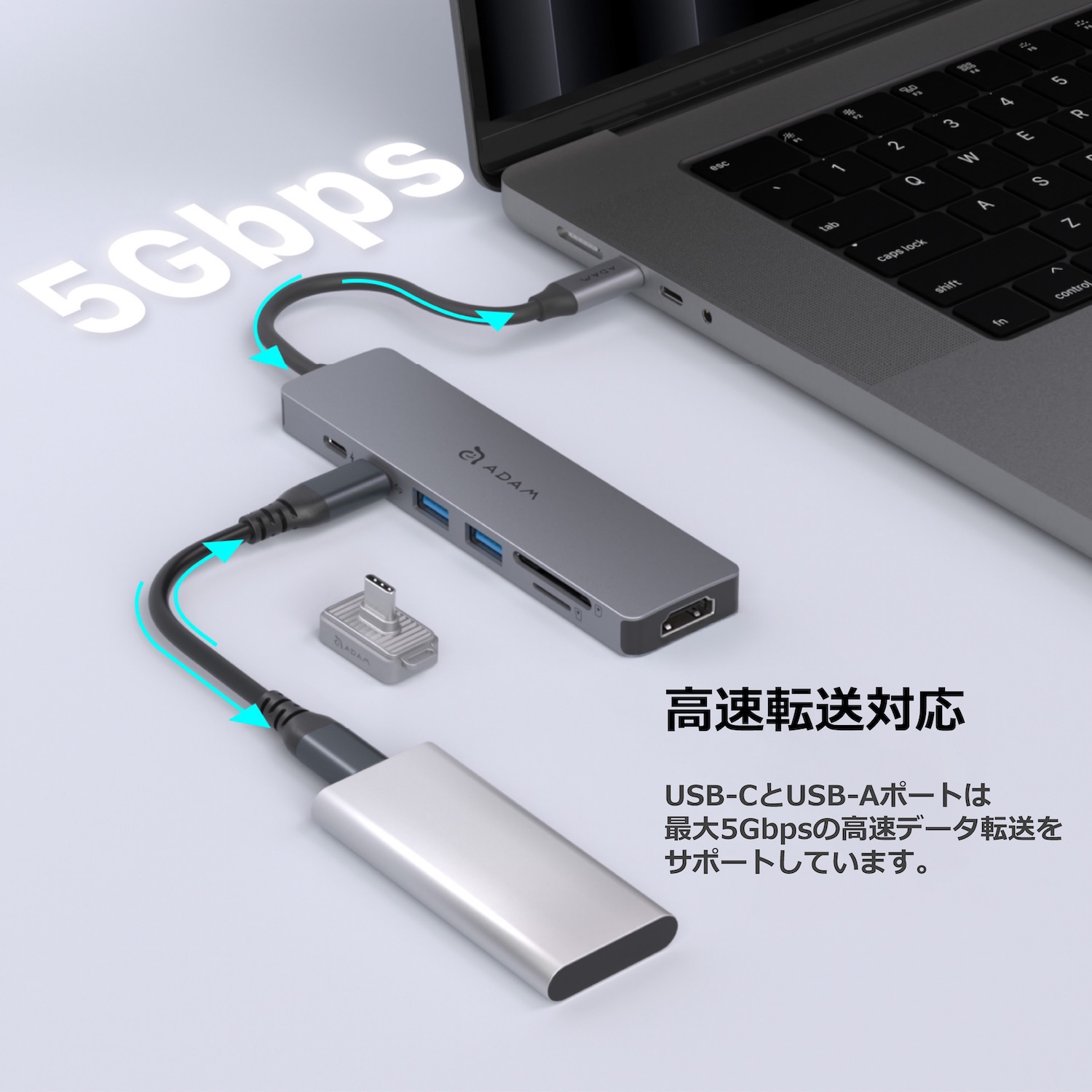 | データ転送速度: | USB-A: 最大5Gbps USB-C: 最大5Gbps |