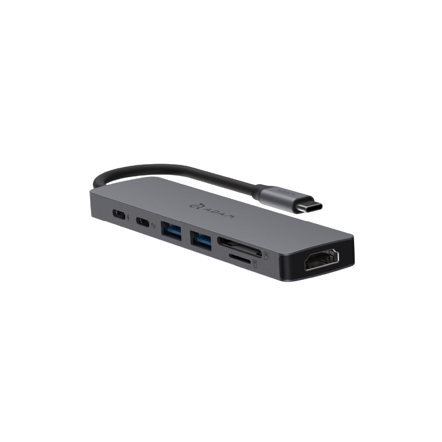 ケーブルを1本接続するだけで、PD充電、USB-Aポート、USB-Cポート、HDMI出力、メモリーカードスロットなど7つの機能を拡張できます。
