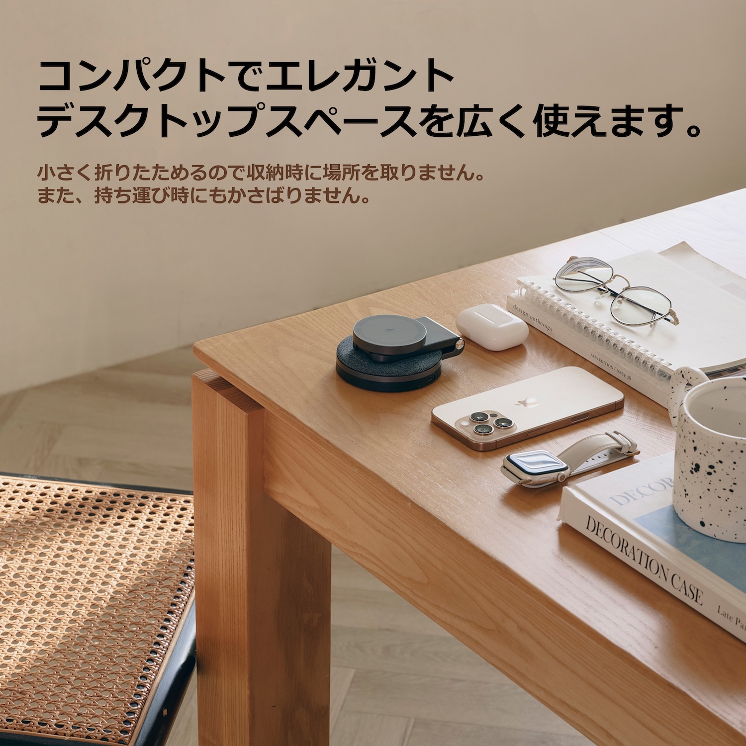 Qi2対応360度回転トラベル充電スタンド