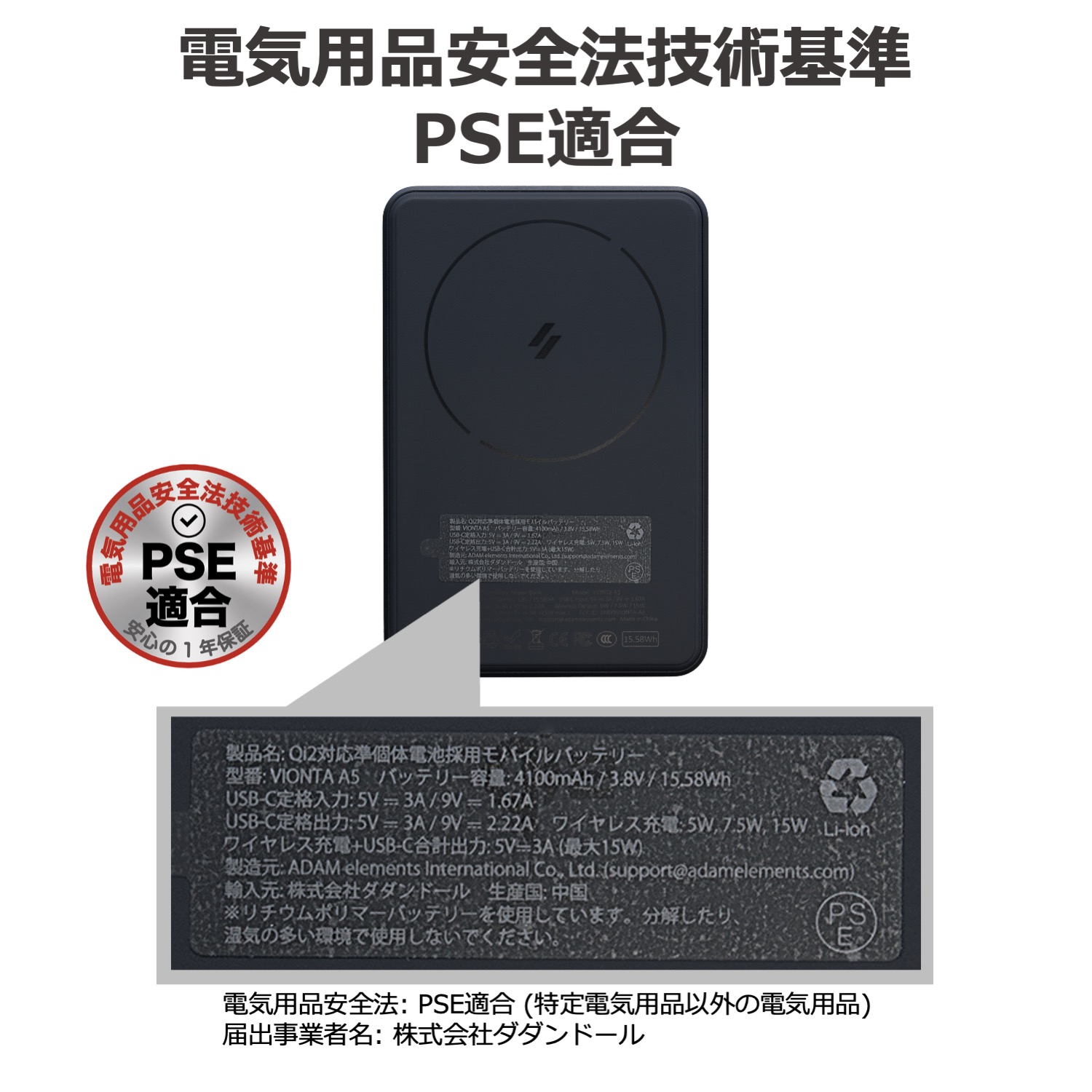 安心してご利用いただける電気用品安全法 (PSE)の技術基準に適合した製品です。