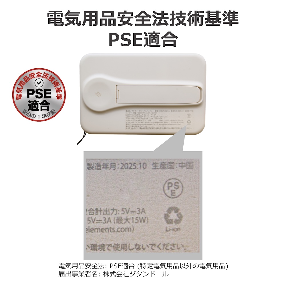 安心してご利用いただける電気用品安全法 (PSE)の技術基準に適合した製品です。