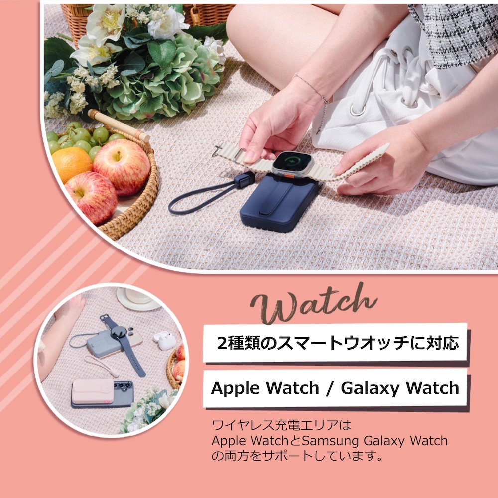 ●スマートウォッチも外出先で充電可能