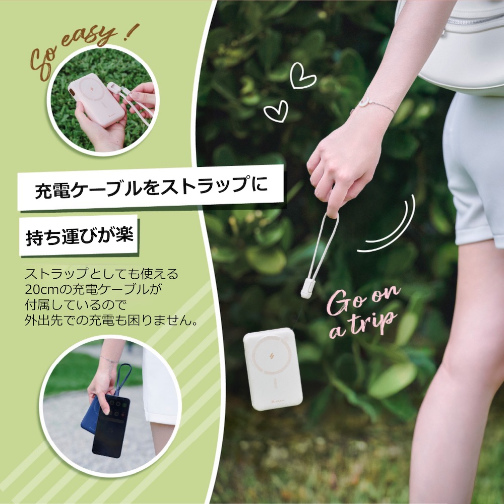 ●充電ケーブルがストラップになり、持ち運びが楽