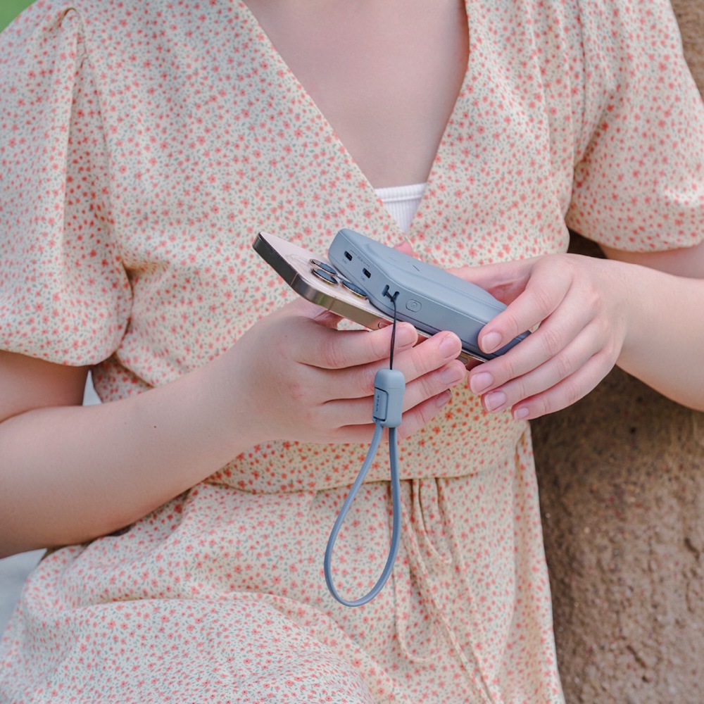 充電用ケーブルをストラップとしても利用できるので、別途ケーブルを携帯する必要がなく充電ケーブルを忘れる事もありません。