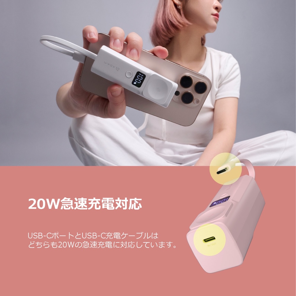 20W急速充電に対応しており、スマホを素早く充電します。