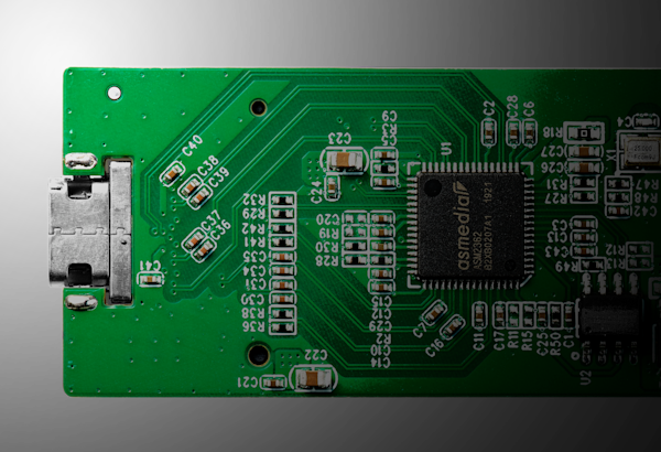 【高速USB 3.2 Gen 2インターフェイス】高速なM.2 NVMe SSDは、もちろんPCIe接続されたときに最高パフォーマンスが発揮される。そんな高性能SSDをあえて外付ストレージとして利用するのであれば、接続インターフェイスには拘りたい。DDSS01は規格上の転送速度10GbpsのUSB 3.2 Gen 2(USB 3.1 Gen 2)、さらにPCIe to USBブリッジチップには定評あるASMedia「ASM2362」を採用。外付けストレージの利便性とM.2 NVMe SSDの高い性能、2つの要素を最適なバランスで両立させる。考えられるボトルネックが解消されれば、憂いなくSSDを利用できるだろう。