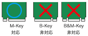 SATAタイプのM.2 SSD(B-Key、B&M-Keyの形状)を取り付けようとしていませんか? 本製品はSATAタイプのM.2 SSDには対応しておりません。