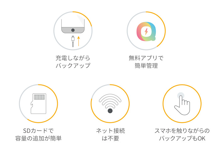 毎日の充電中に、旅行先での充電中に、Qubiiは自動でしっかりバックアップします。